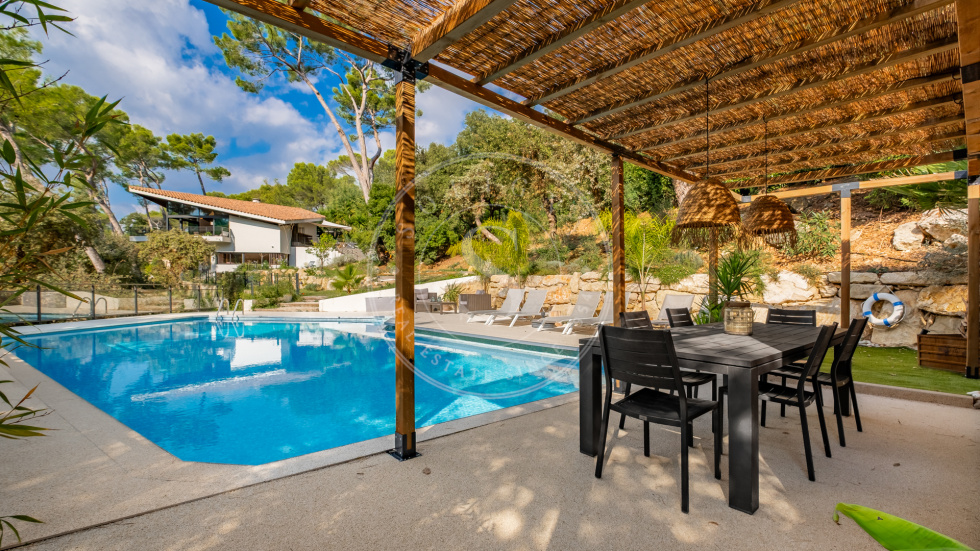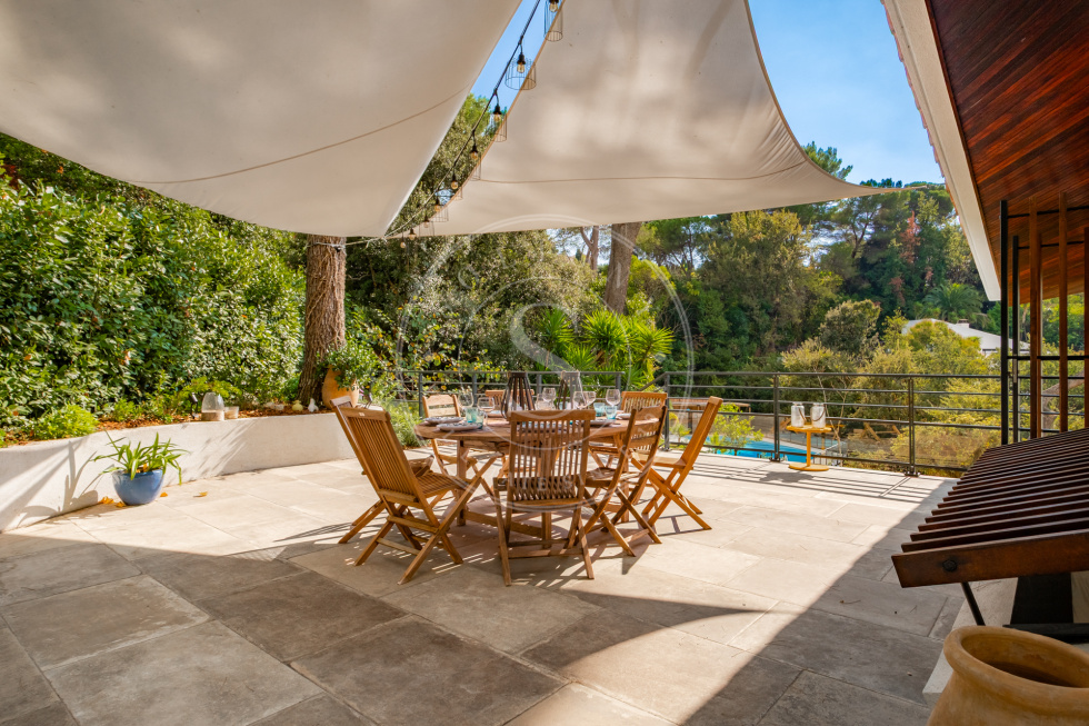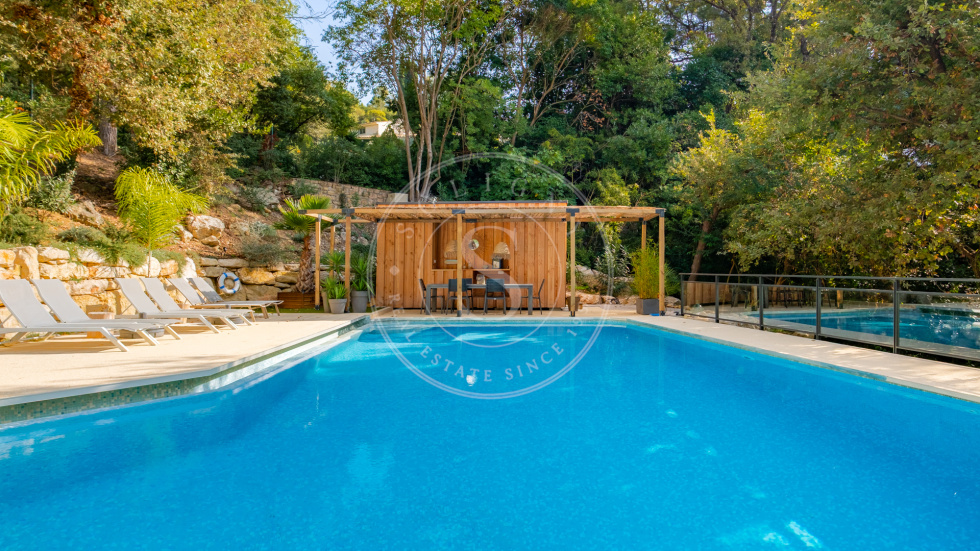 Superbe villa contemporaine d'environ 245 m2 dans domaine fermé à Mougins, proche accés autoroutier et comodités. Trés calme, vue dégagée. Matériaux luxueux, piscine, pool-house, studio indépendant ou salle de sport. PRODUIT A NE PAS MANQUER !